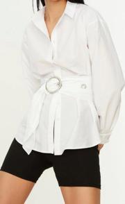 Moda Kadın Gömlek Yaka Düz Desen Resmi Kemerli Toka Detaylı Pamuklu Dokuma Gömlek ürünümüz, hem şıklığı hem de rahatlığı bir arada sunar.Bu Bluz ile zahmetsiz stil keşfedin.Günlük ve özel günleriniz de kullanım için ideal olan bu ürün, kaliteli materyali ve modern tasarımıyla ön plana çıkar.