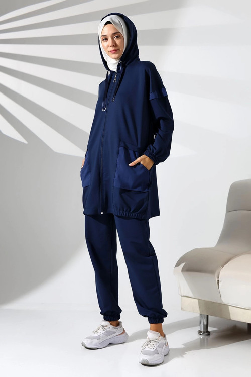 Kadın Mevsimlik Penye Alt üst Spor Ve Rahat Lacivert Tesettür Takım