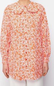 Ersefa Moda Kadın Tesettür Bebe Yaka Çiçekli Desen Günlük Bebe Yaka Dokuma Çıtır Çiçek Desenli Gömlek