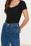Moda Kalp Yaka Örme Slim Düz Desen Casual Günlük Regular Kısa Kol Bluz ürünümüz, hem şıklığı hem de rahatlığı bir arada sunar