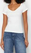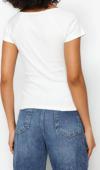 Ersefa Moda Kalp Yaka Örme Fit Düz Desen Casual Günlük Regular Kısa Kol Bluz