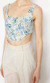 Moda Kare Yaka Dokuma Slim Fit Çiçekli Desen Şık gece Crop Askılı Kol Bluz ürünümüz, hem şıklığı hem de rahatlığı bir arada sunar