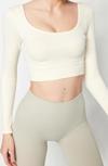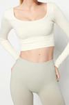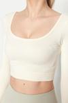 Moda Kare Yaka Örme Fit Düz Desen Sportswear Crop Uzun Kol Bluz ürünümüz, hem şıklığı hem de rahatlığı bir arada sunar