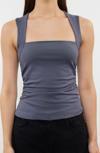 Ürün Özellikleri şu şekildedir: Desen:Düz | Yaka Tipi:Kare Yaka | Materyal:Pamuklu | Kol Tipi:Standart Kol | Kalıp:Slim | Kumaş Tipi:Örme | Stil:Günlük | Renk:Gri | Askı:Ekstra kalın | Cep:Cepsiz | Ürün Detayı:Büzgü / Drape | Ürün Tipi:Düz | Kalınlık:Orta | Astar Durumu:Astarsız | Boy:Regular | Koleksiyon:Basic | Kol Boyu:Askılı | Ortam:Casual/Günlük | Siluet:Basic | Dokuma Tipi:Likralı Süprem | Ek Özellik:Ek Özellik Mevcut Değil | Persona:Feminine | Kemer/Kuşak Durumu:Kemersiz | Baskı/Nakış Tekniği:Baskısız | Kapama Şekli:Kapamasız | Sürdürülebilirlik Detayı:Hayır | Materyal Bileşeni:96% Pamuk, ,4% Elastan | Yıkama Talimatı:T10 | Paket İçeriği:Tekli | Yaş:Tüm Yaş Grupları |