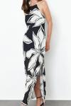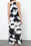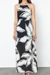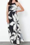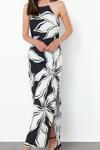 Ersefa Moda Kolsuz Halter Yaka Çok Renkli Batik Desenli Düz Kesim Kolsuz Maxi Astarlı Saten Dokuma Elbise