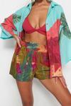 Ersefa Moda Manzara Gömlek Yaka Düşük Kol Plaj Manzara Desenli Dokuma %100 Pamuklu Gömlek Şort Takım