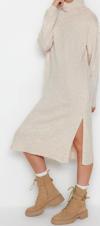 Moda Oversize Casual Günlük Dolu İğne Triko Balıkçı Yaka Uzun Kol Shift Midi Boy Elbise ile zahmetsiz stil keşfedin.