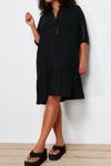 Ersefa Moda Oversize Plaj Günlük Poplin Dokuma V Yaka Truvakar Kol Kol Shift Mini Boy Büyük Beden Elbise