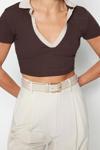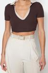 Moda Polo Yaka Örme Slim Renk Bloklu Desen Casual Günlük Crop Kısa Kol Bluz ürünümüz, hem şıklığı hem de rahatlığı bir arada sunar.Bu Bluz ile zahmetsiz stil keşfedin.Günlük ve özel günleriniz de kullanım için ideal olan bu ürün, kaliteli materyali ve modern tasarımıyla ön plana çıkar. Yeni sezonun trendlerini yakından takip edenler için mükemmel bir seçim.