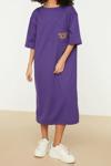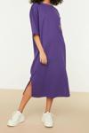 Ersefa Moda Rahat Casual Günlük 2 İplik Şardonsuz Örme Bisiklet Yaka Truvakar Kol Kol Shift Midi Boy Elbise