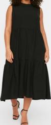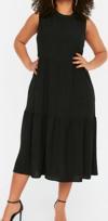 Ersefa Moda Rahat Casual Günlük Aerobin Dokuma Bisiklet Yaka Kolsuz Kol Smock Maxi Boy Büyük Beden Elbise
