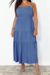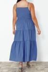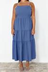 Ersefa Moda Rahat Casual Günlük Aerobin Dokuma Kare Yaka Kolsuz Kol A-Line Midi Boy Büyük Beden Elbise