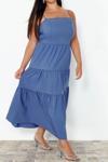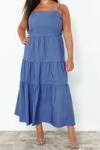 Moda Rahat Casual Günlük Aerobin Dokuma Kare Yaka Kolsuz Kol A-Line Midi Boy Büyük Beden Elbise ile zahmetsiz stil keşfedin.