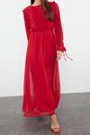 Moda Rahat Gündüz Gece Şifon Dokuma Bisiklet Yaka Uzun Kol A-Line Maxi Boy Tesettür Elbise ile zahmetsiz stil keşfedin.
