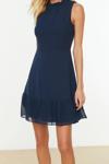 Moda Regular Business Şifon Dokuma Dik Yaka Kolsuz Kol A-Line Mini Boy Elbise ile zahmetsiz stil keşfedin.