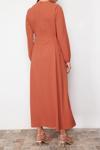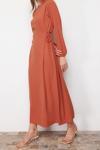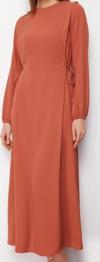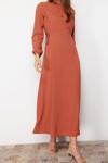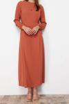Ersefa Moda Regular Casual Günlük Aerobin Dokuma Bisiklet Yaka Uzun Kol Shift Maxi Boy Tesettür Elbise