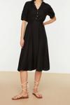 Moda Regular Casual Günlük Aerobin Dokuma Gömlek Yaka Kısa Kol Skater Midi Boy Elbise ile zahmetsiz stil keşfedin.