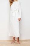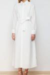 Ersefa Moda Regular Casual Günlük Brode Dokuma Gömlek Yaka Uzun Kol Gömlek Elbise Maxi Boy Tesettür Elbise