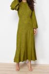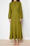 Ersefa Moda Regular Casual Günlük Jakar Dokuma Bisiklet Yaka Uzun Kol A-Line Maxi Boy Tesettür Elbise