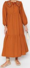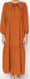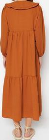 Ersefa Moda Regular Casual Günlük Keten Görünümlü Dokuma Bebe Yaka Uzun Kol Basic Maxi Boy Tesettür Elbise