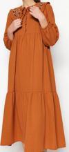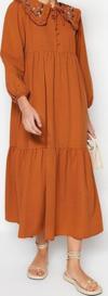 Moda Regular Casual Günlük Keten Görünümlü Dokuma Bebe Yaka Uzun Kol Basic Maxi Boy Tesettür Elbise ile zahmetsiz stil keşfedin.