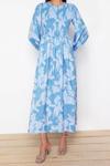 Ersefa Moda Regular Casual Günlük Poplin Dokuma Bisiklet Yaka Uzun Kol A-Line Maxi Boy Tesettür Elbise