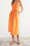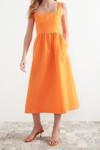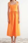 Moda Regular Casual Günlük Poplin Dokuma Kare Yaka Askılı Kol Skater Midi Boy Elbise ile zahmetsiz stil keşfedin.