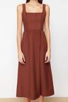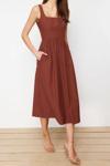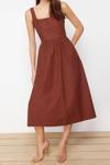 Moda Regular Casual Günlük Poplin Dokuma Kare Yaka Askılı Kol Skater Midi Boy Elbise ile zahmetsiz stil keşfedin.