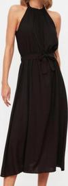 Moda Regular Casual Günlük Shally Dokuma Halter Yaka Kolsuz Kol A-line Midi Boy Elbise ile zahmetsiz stil keşfedin.