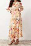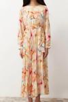 Askılı Kare Yaka Roma Kat Kat Müslin Uzun Yazlık Elbise Krem Krm - Image 1