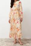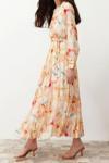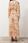 Moda Stil Fitted Degaje Yaka Maxi Boy Taş Baskı Tül Örme Elbise - Image 1