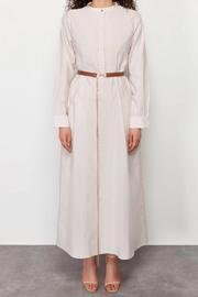 Ersefa Moda Regular Casual Günlük Terrycotton Dokuma Hakim Yaka Uzun Kol A-Line Maxi Boy Tesettür Elbise