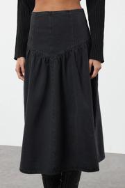 Moda Regular Düz Desen Günlük Midi Denim Etek ürünümüz, hem şıklığı hem de rahatlığı bir arada sunar.