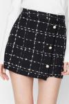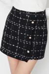Ersefa Moda Regular Ekose Desen Günlük Mini Boy Düğme Detaylı A-line Tüvit Kumaş Mini Boy Dokuma Etek
