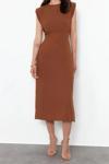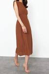 Moda Regular Gündüz Gece Aerobin Dokuma Bisiklet Yaka Kolsuz Kol A-Line Midi Boy Elbise ile zahmetsiz stil keşfedin.