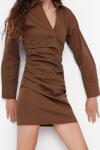 Moda Regular Gündüz Gece Gabardin Dokuma Gömlek Yaka Uzun Kol Gömlek Elbise Mini Boy Elbise ile zahmetsiz stil keşfedin.