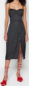 Moda Regular Gündüz Gece Saten Dokuma V Yaka Askılı Kol A-Line Midi Boy Elbise ile zahmetsiz stil keşfedin.