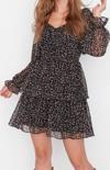 Moda Regular Gündüz Gece Şifon Dokuma Kalp Yaka Uzun Kol Skater Mini Boy Elbise ile zahmetsiz stil keşfedin.