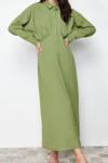 Ersefa Moda Regular Günlük Jessica Dokuma Gömlek Yaka Uzun Kol Gömlek Elbise Maxi Boy Tesettür Elbise