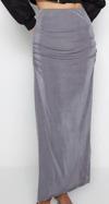Desen: Düz | Bel: Yüksek Bel | Kumaş Tipi: Örme | Renk: Gri | Ürün Tipi: Düz | Ürün Detayı: Büzgü / Drape | Boy: Maxi | Siluet: Kalem | Ortam: Casual/Günlük | Ek Özellik: Beli lastikli | Dokuma Tipi: Buzzy | Persona: Fashion Forward | Sürdürülebilirlik Detayı: Hayır | Materyal Bileşeni: 96% Polyester, 4% Elastan | Yıkama Talimatı: T10 | Paket İçeriği: Tekli | Yaş: Tüm Yaş Grupları