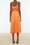 Moda Regular Mezuniyet Balo Saten Dokuma Kruvaze Askılı Kol Skater Midi Boy Elbise ile zahmetsiz stil keşfedin.