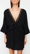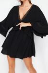 Moda Regular Plaj Günlük Crinkle Dokuma V Yaka Truvakar Kol Kol Basic Mini Boy Elbise ile zahmetsiz stil keşfedin.