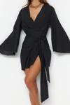 Ersefa Moda Regular Plaj Günlük Flamlı Pamuk Dokuma V Yaka Uzun Kol Shift Mini Boy Elbise