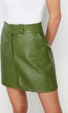 Ersefa Moda Shift Düz Desen Şık Gece Mini Boy Premium Yüksek Kalite A-Line Suni Deri Mini Dokuma Etek