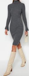 Moda Slim Casual Günlük Fitilli Triko Balıkçı Yaka Uzun Kol Bodycone Mini Boy Elbise ile zahmetsiz stil keşfedin.
