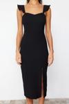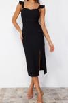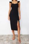 Ersefa Moda Slim Casual Günlük Köpük Kumaş Örme Boyundan Bağlamalı Askılı Kol Bodycone Midi Boy Elbise