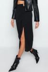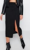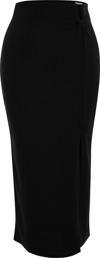 Ersefa Moda Slim Düz Desen Şık Gece Maxi Boy Krep Tokalı Yırtmaç detaylı Maxi Yüksek Bel Esnek Örme Etek