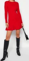 Moda Slim Gündüz Gece Dolu İğne Triko Bisiklet Yaka Uzun Kol A-Line Mini Boy Elbise ile zahmetsiz stil keşfedin.