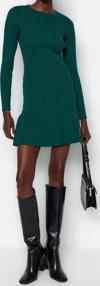Moda Slim Gündüz Gece Dolu İğne Triko Bisiklet Yaka Uzun Kol A-Line Mini Boy Elbise ile zahmetsiz stil keşfedin.