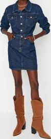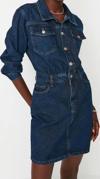 Moda Slim Şık Abiye Gece Rigid Denim Gömlek Yaka Truvakar Kol Kol Bodycone Mini Boy Elbise ile zahmetsiz stil keşfedin.